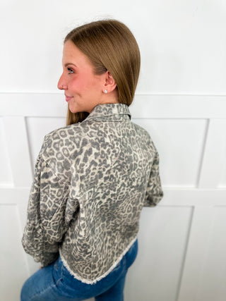 Wild at Last Cotton Blend Long Sleeve Leopard Avery Mae Mom Cropped Jacket