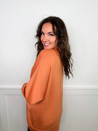 Fall is Calling Cotton Blend Long Sleeve Rust Orange Avery Mae Graphic Crewneck Sweatshirt