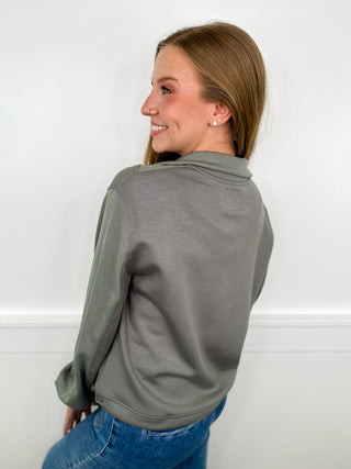 Look Around Long Sleeve Grey Avery Mae Mom Cropped Quarter Zip Sweatshirt