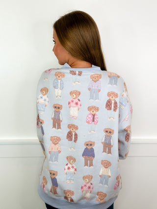 Bear Hug Cotton Blend Long Sleeve Blue Avery Mae Mock Neck Sweatshirt