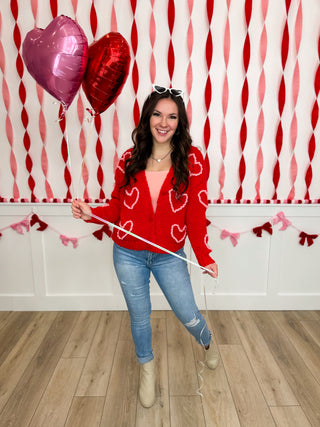 Heart-to-Heart Knit Long Sleeve Red Avery Mae Mom Cropped Cardigan