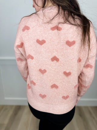 The Heart-Stitch Knit Long Sleeve Pink Avery Mae Sweater Top