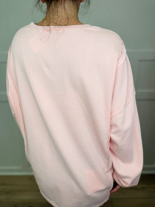 Easel Sweetheart Society Cotton Blend Long Sleeve Pink Avery Mae Top