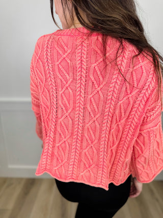 White Birch All the Feels Knit 3/4 Sleeve Pink Mom Cropped Sweater Top