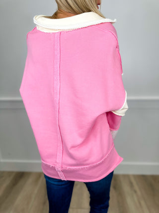 Here's My Confession Cotton Blend Long Sleeve Pink Avery Mae Half Zip Hoodie Sweatshirt