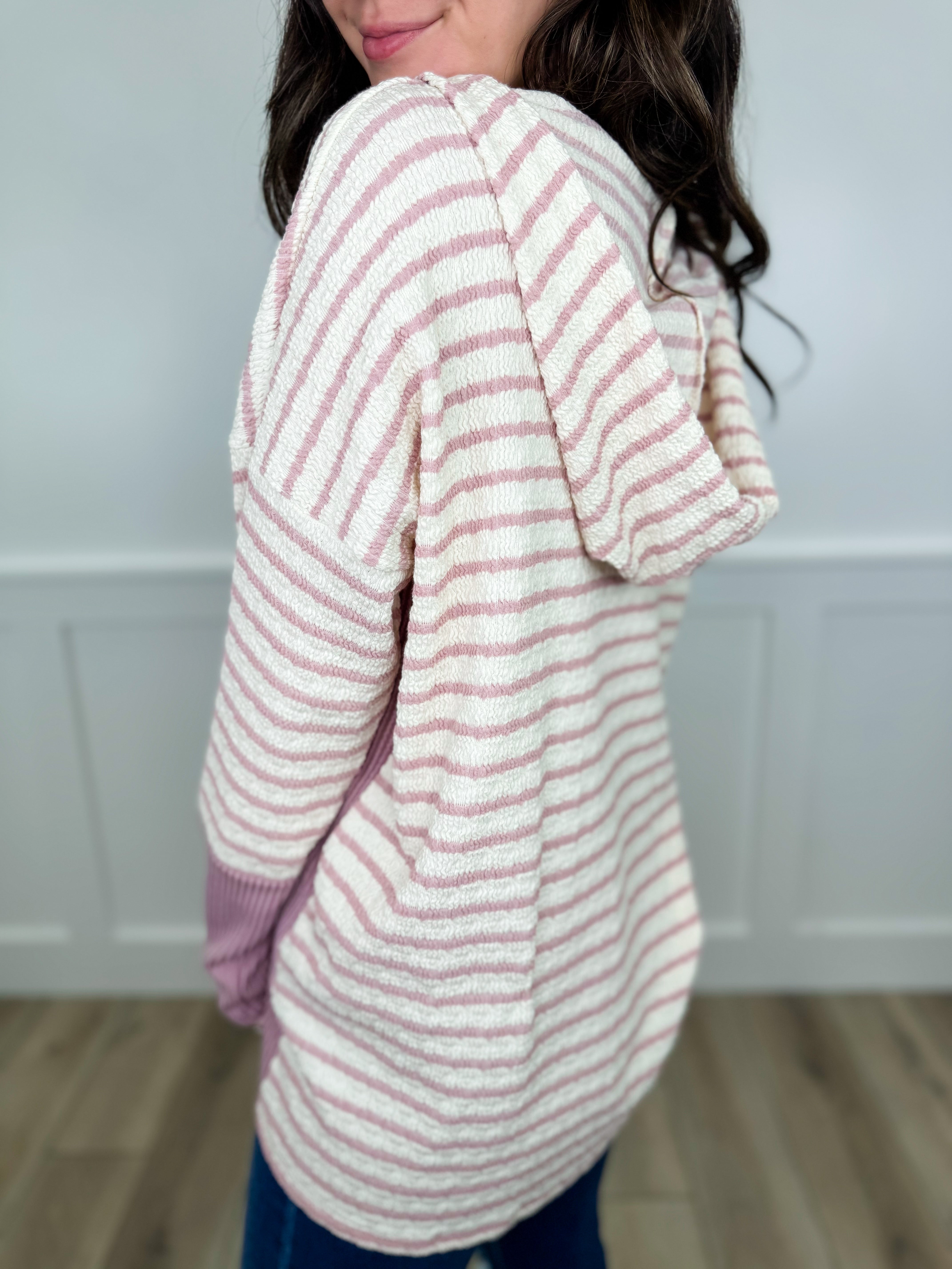 Cozy up in the It's Perfection Ribbed Long Sleeve Mauve Avery Mae Hooded Top, where comfort meets style. Featuring a soft ribbed fabric, a hood, functional buttons, and a kangaroo pocket, this top keeps you ready for anything.