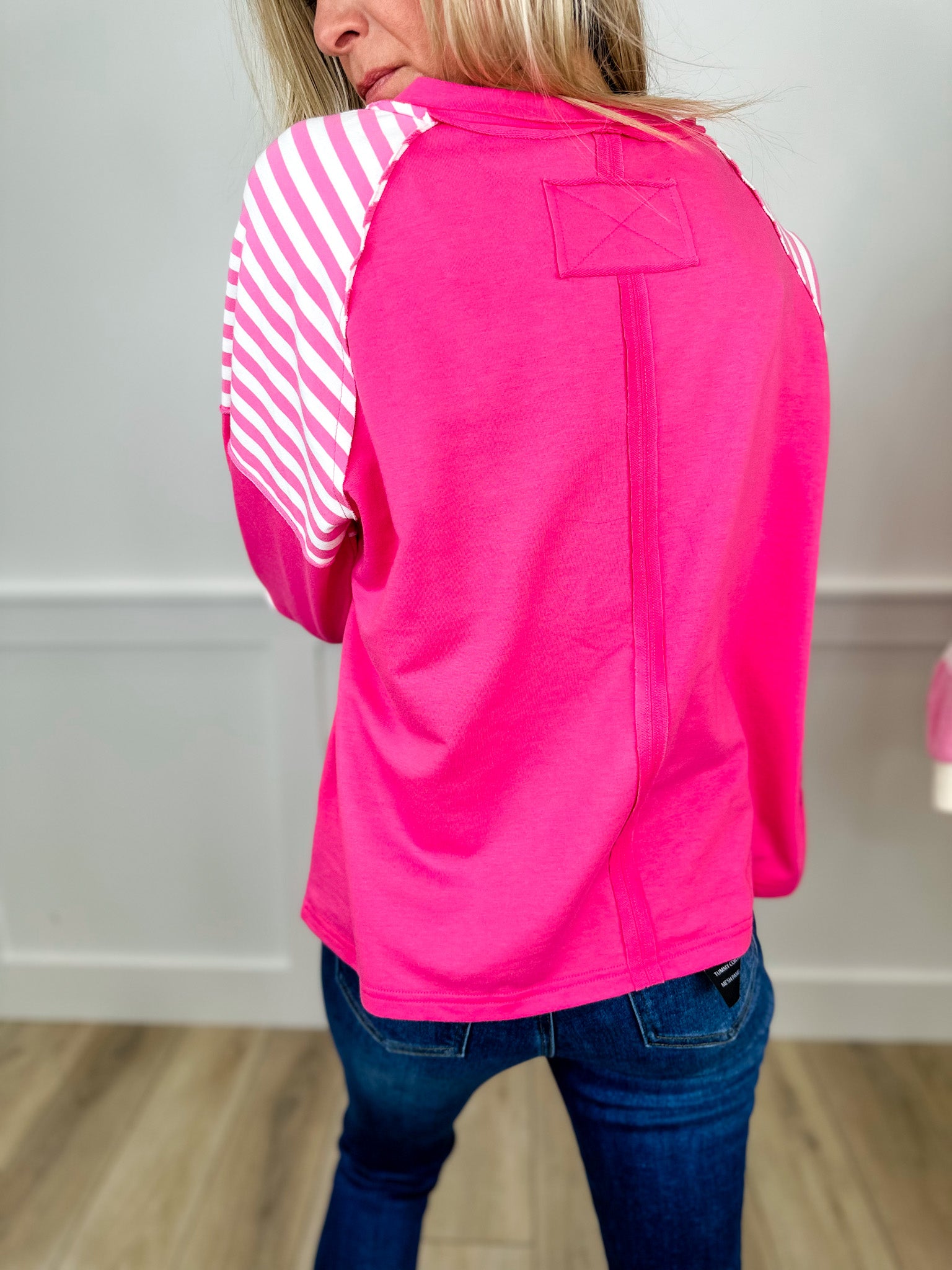 Fall in love with this oversized long sleeve top from Avery Mae! Made with soft cotton, it's perfect for all-day comfort. Show your heart some love with the adorable heart detail on the sleeve. Available in pink, it's the perfect addition to your wardrobe. (Love at first sight not included.)