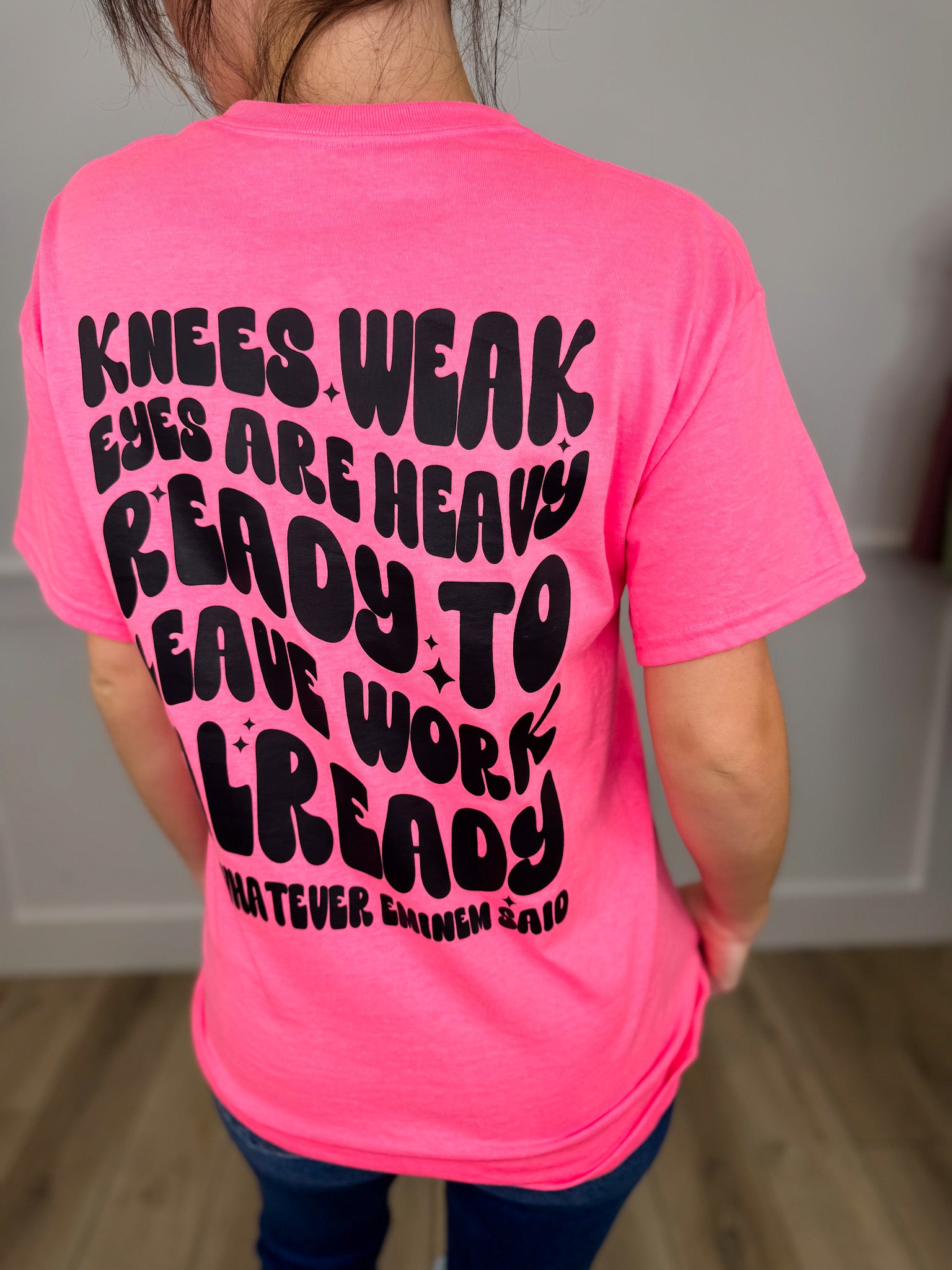 Your new favorite escape plan just arrived. This hot pink cotton blend tee features an edgy black graphic that says what you're thinking when the workday won't end. Comfortable enough to live in, bold enough to make a statement, and perfect for those moments when you need to channel your inner rebel. Slip it on and let your shirt do the heavy lifting while you dream of freedom.
