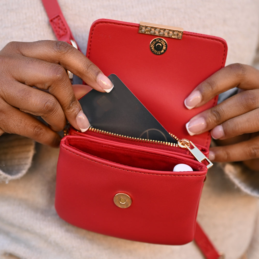 • Secure Pouch: Zippered compartments hold cash, cards, and small items safely