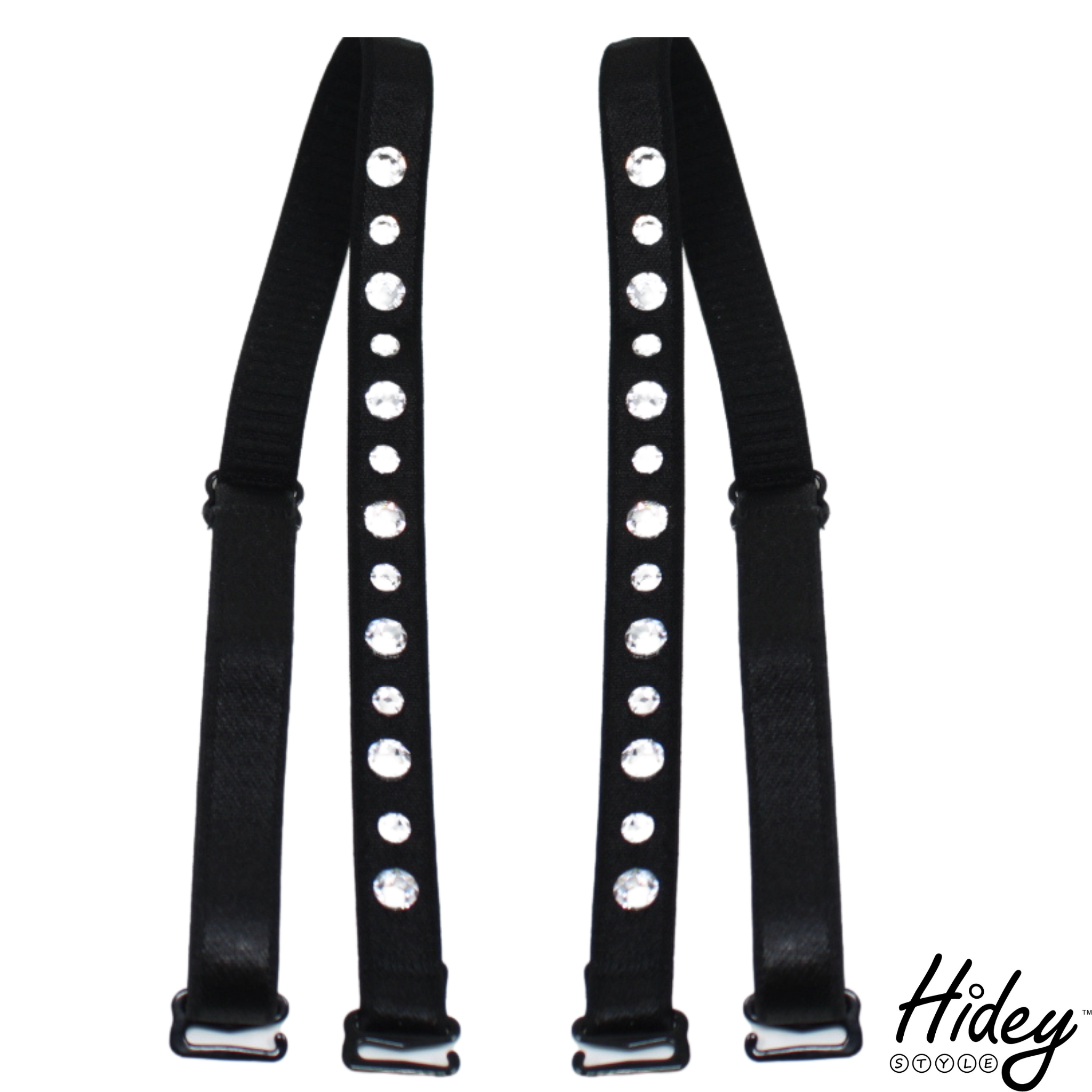 Hidey Bra Straps are designed with Austrian Crystals so you don't have to worry about your bra straps showing anymore! They hook to any versatile bra & are guaranteed to ensure your bra stays put.