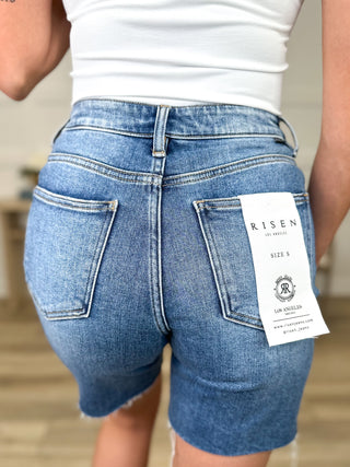 Risen Tilly Tummy Control Denim Shorts - Medium Wash (Raw Hem, Non-Distressed)
