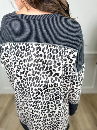 More Than Once Ribbed Long Sleeve Leopard Print Avery Mae Top