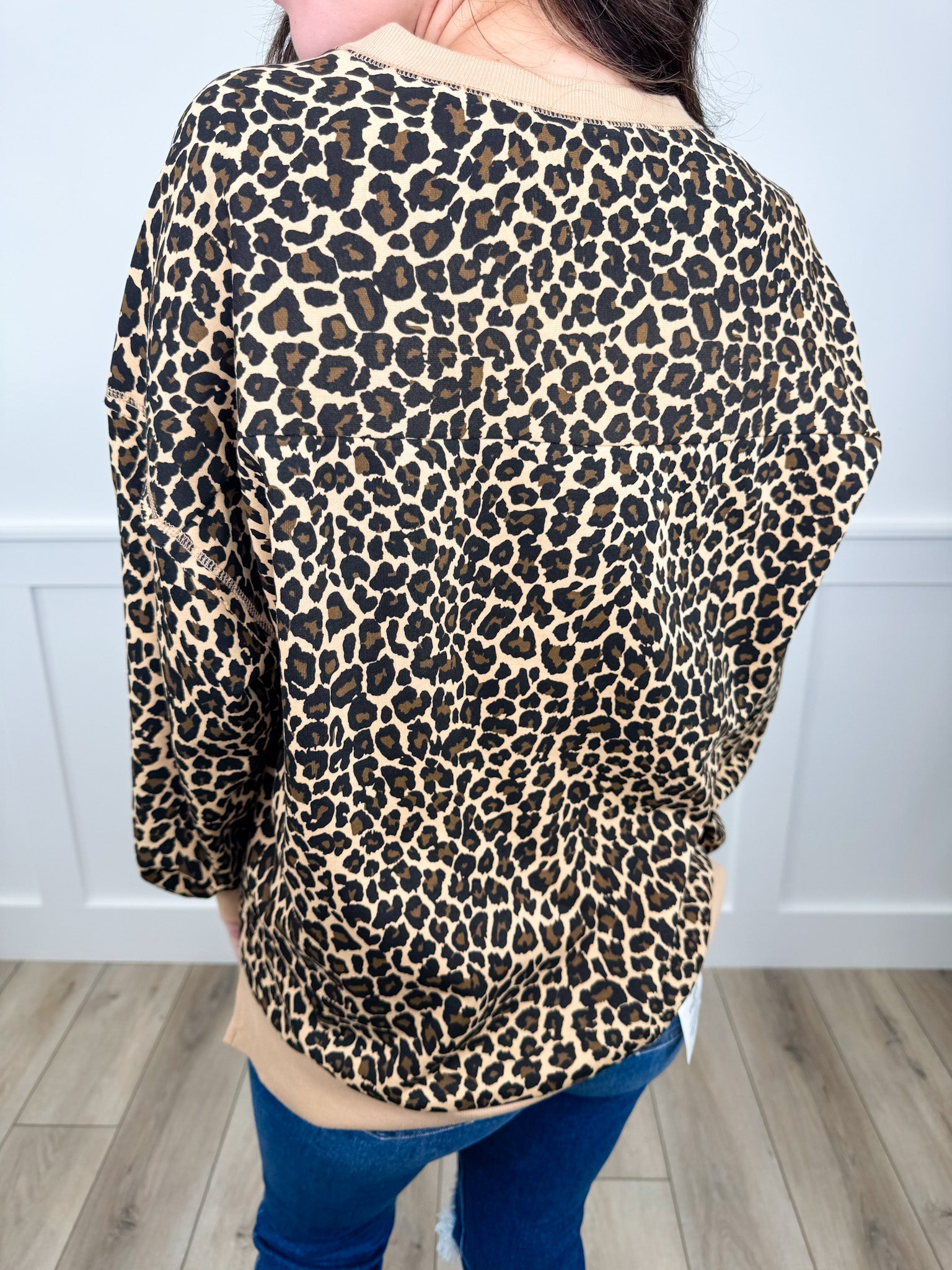 Unleash your bold side with the Fearlessly Authentic Cotton Long Sleeve Leopard Print Avery Mae Top. Crafted from soft, breathable cotton, this top combines comfort with a striking leopard print that commands attention. Its long sleeves add an edgy, confident vibe perfect for making a statement wherever you go.
