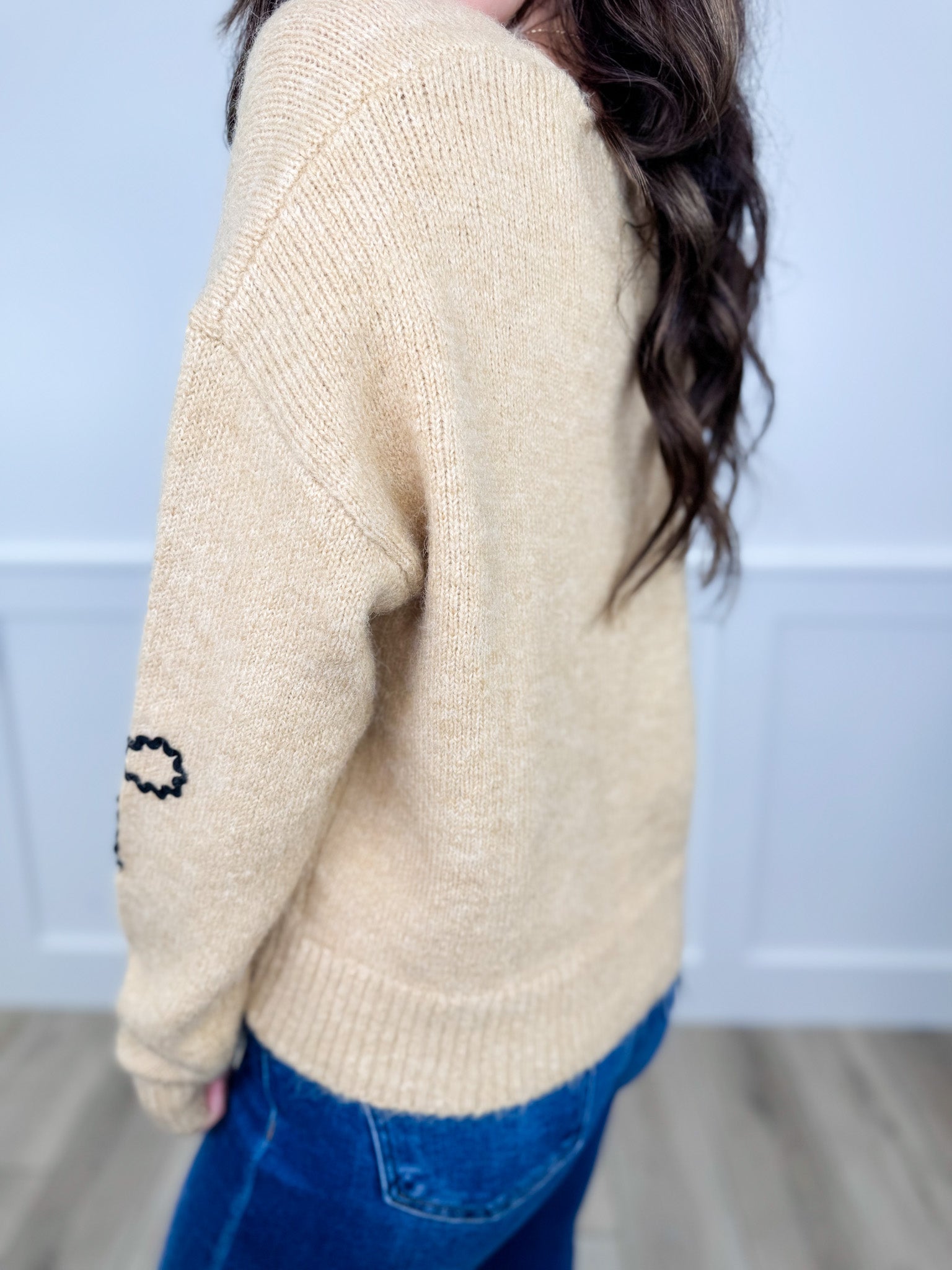 Elevate your wardrobe with this daring tan sweater top featuring a flattering V-neck and long sleeves that balance cozy and chic. The eye-catching bow details add a playful yet sophisticated edge, making it perfect for those who want to stand out effortlessly. Embrace comfort without sacrificing style in this must-have knit piece.