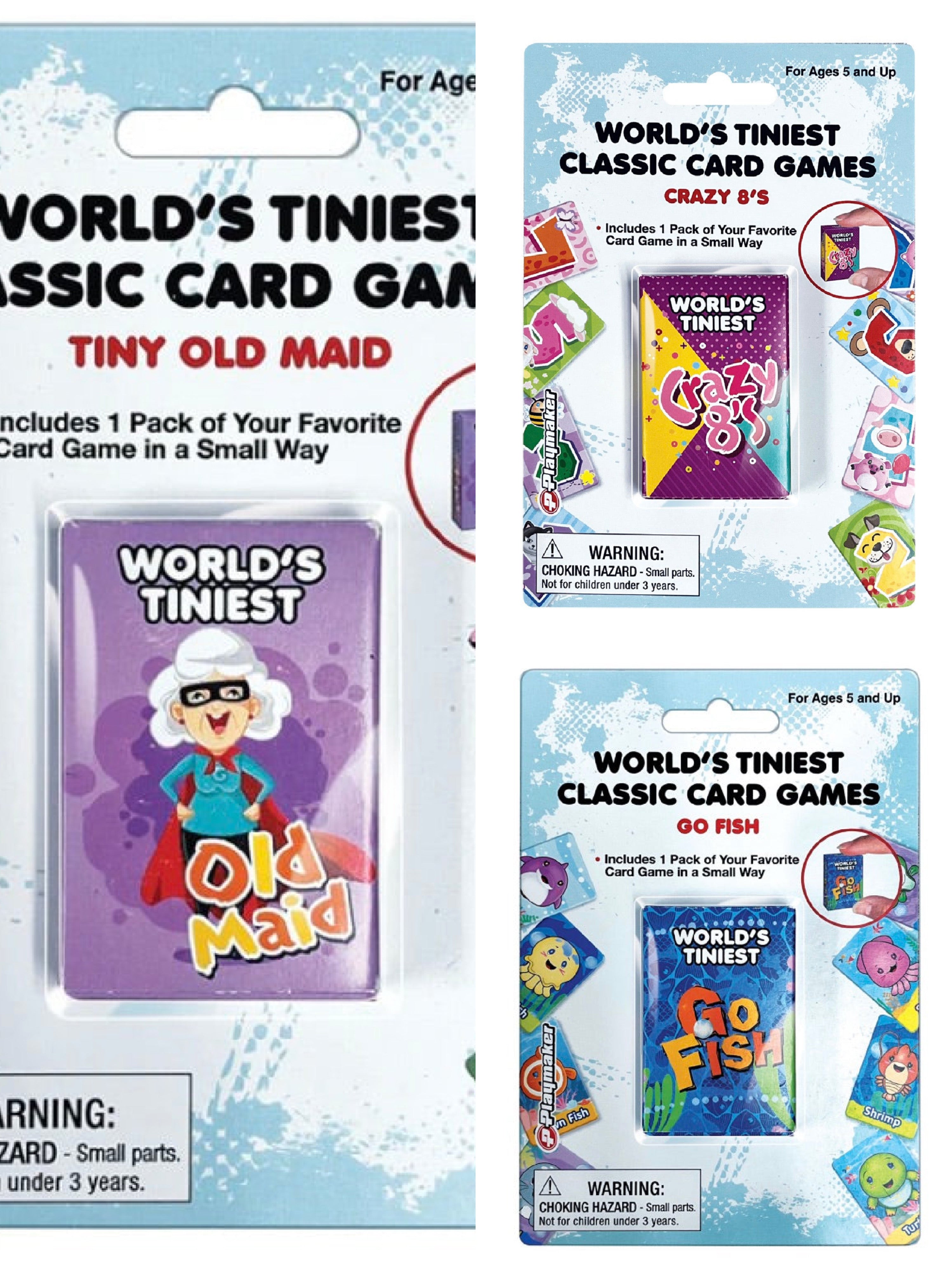 Discover the magic of classic card gaming in the most adorable package ever! This pint-sized deck packs all the fun of traditional card games into a travel-friendly format. Featuring vibrant, eye-catching colors that make every hand a visual delight, it's perfect for quick games anywhere—whether you're on the go or just looking to add a whimsical touch to game night. Tiny in size, massive in entertainment value! | For ages 5+.