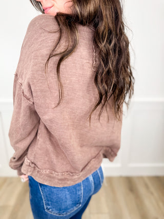 Waiting On You Cotton Long Sleeve Brown Avery Mae Button Up Top