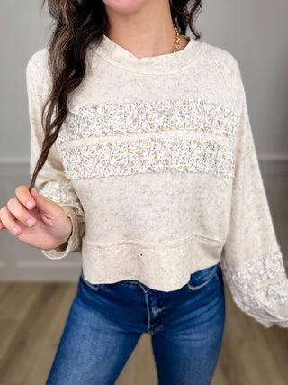Delightful Petals Knit Long Sleeve Oat Avery Mae Sweater Top