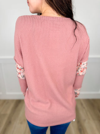 Bloom Where You Are Planted Ribbed Long Sleeve Rose Avery Mae Top