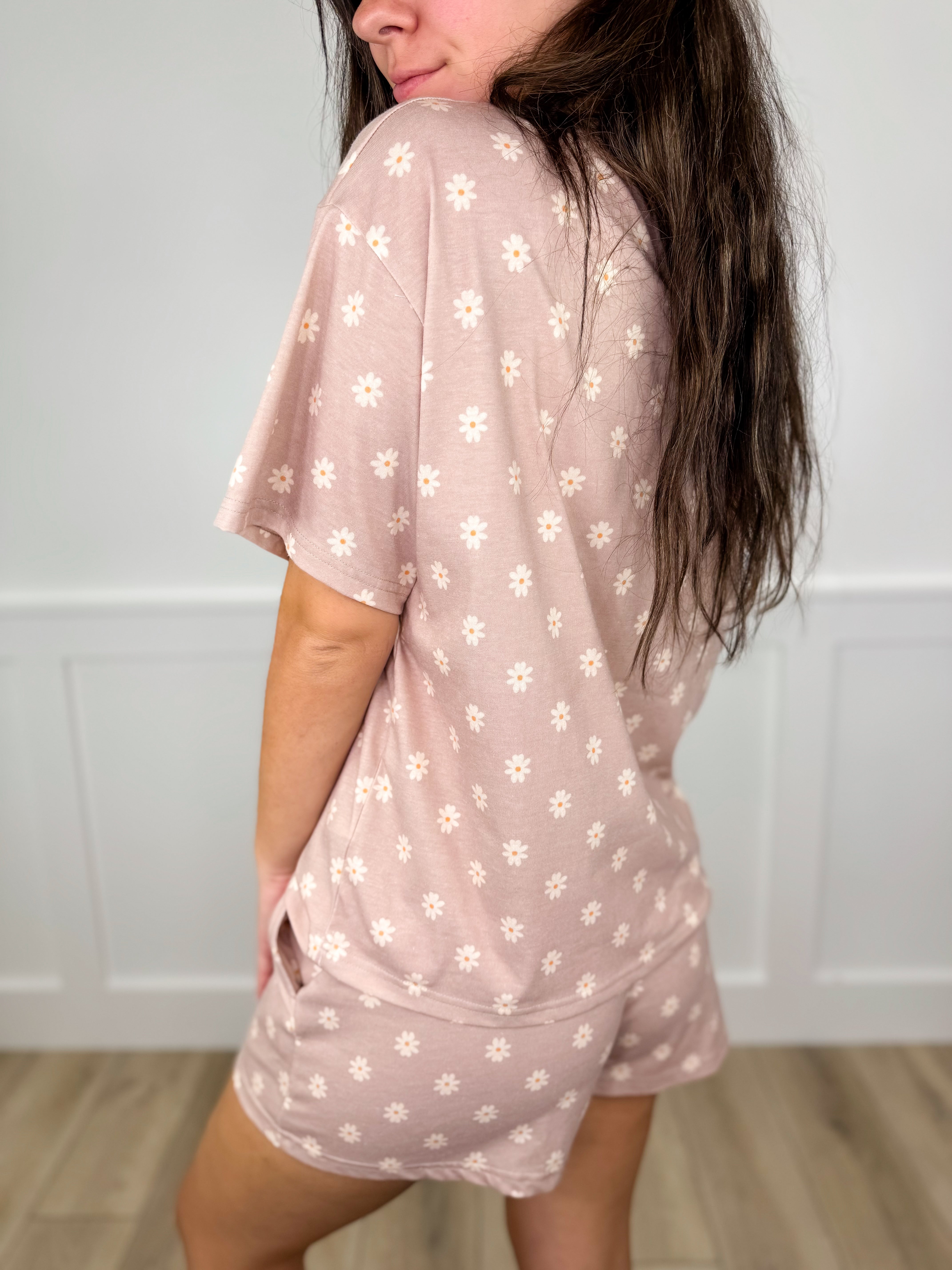 Slip into cozy comfort with the Daisy Dreams Oatmeal Avery Mae Pajama Set. This playful duo features soft boxer shorts with a stretchy elastic band for an easy fit and a short-sleeve top that keeps you breezy all night long. Perfect for lounging or dreamy nights, it blends relaxed style with a comfy vibe you'll love to wear again and again.