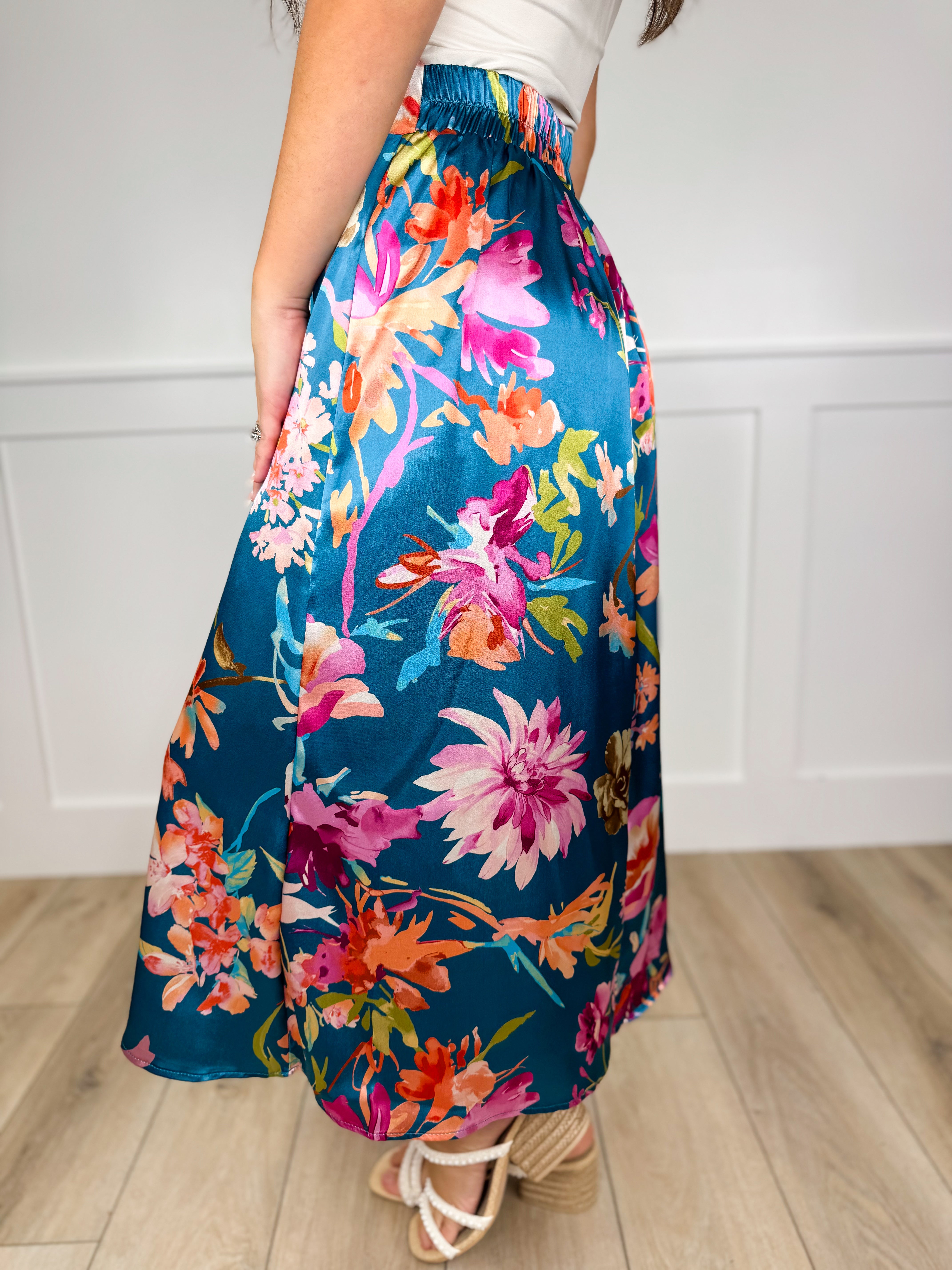 Step into charm with the Sew in Love Pretty in Petals Satin Skirt. Its smooth, teal-blue satin fabric catches the light beautifully, while the delicate floral pattern adds a fresh, feminine touch. Perfect for twirling through sunny days or dressing up for special moments, this skirt combines comfort and style effortlessly—bringing a playful pop of color to your wardrobe.