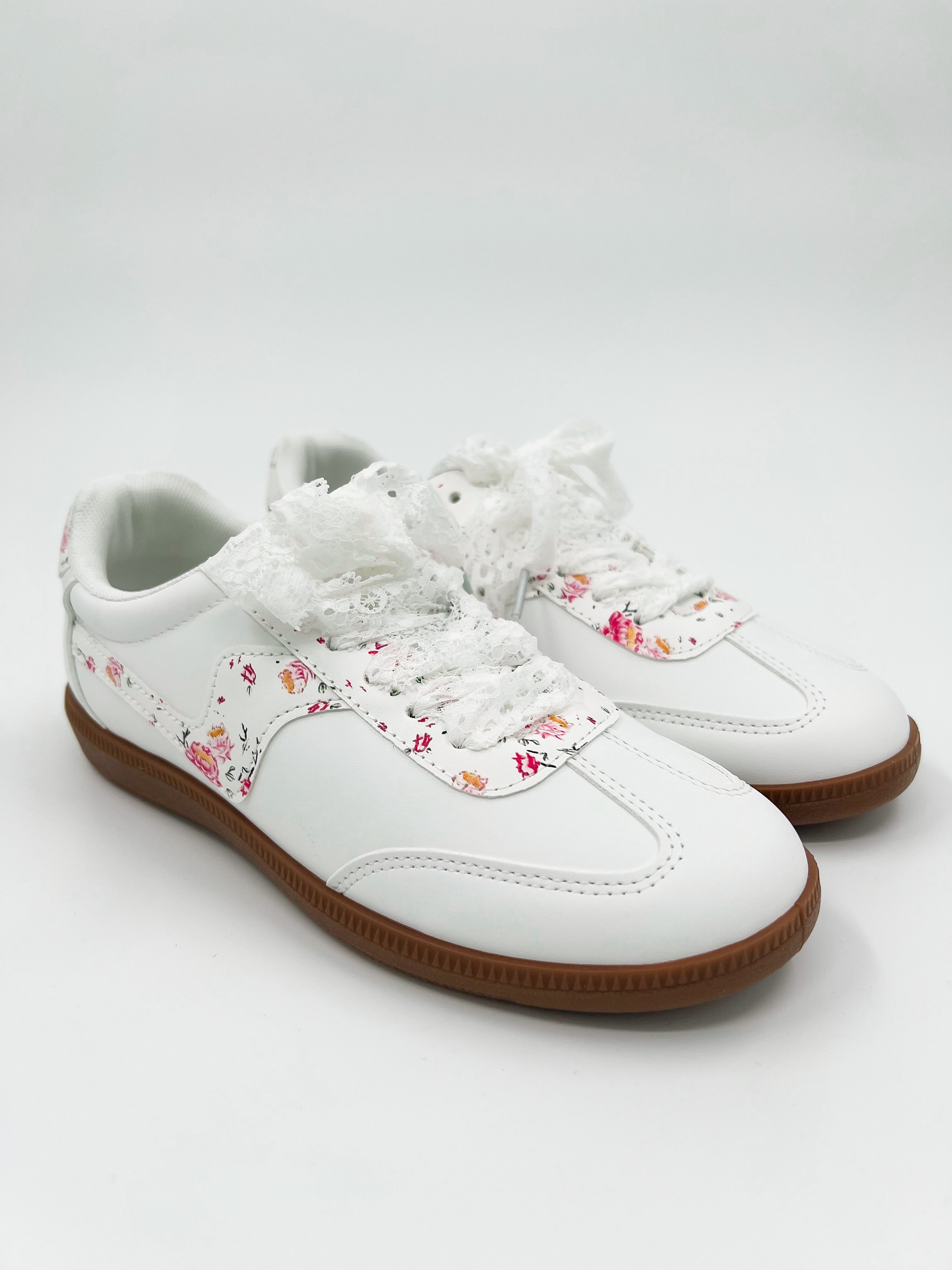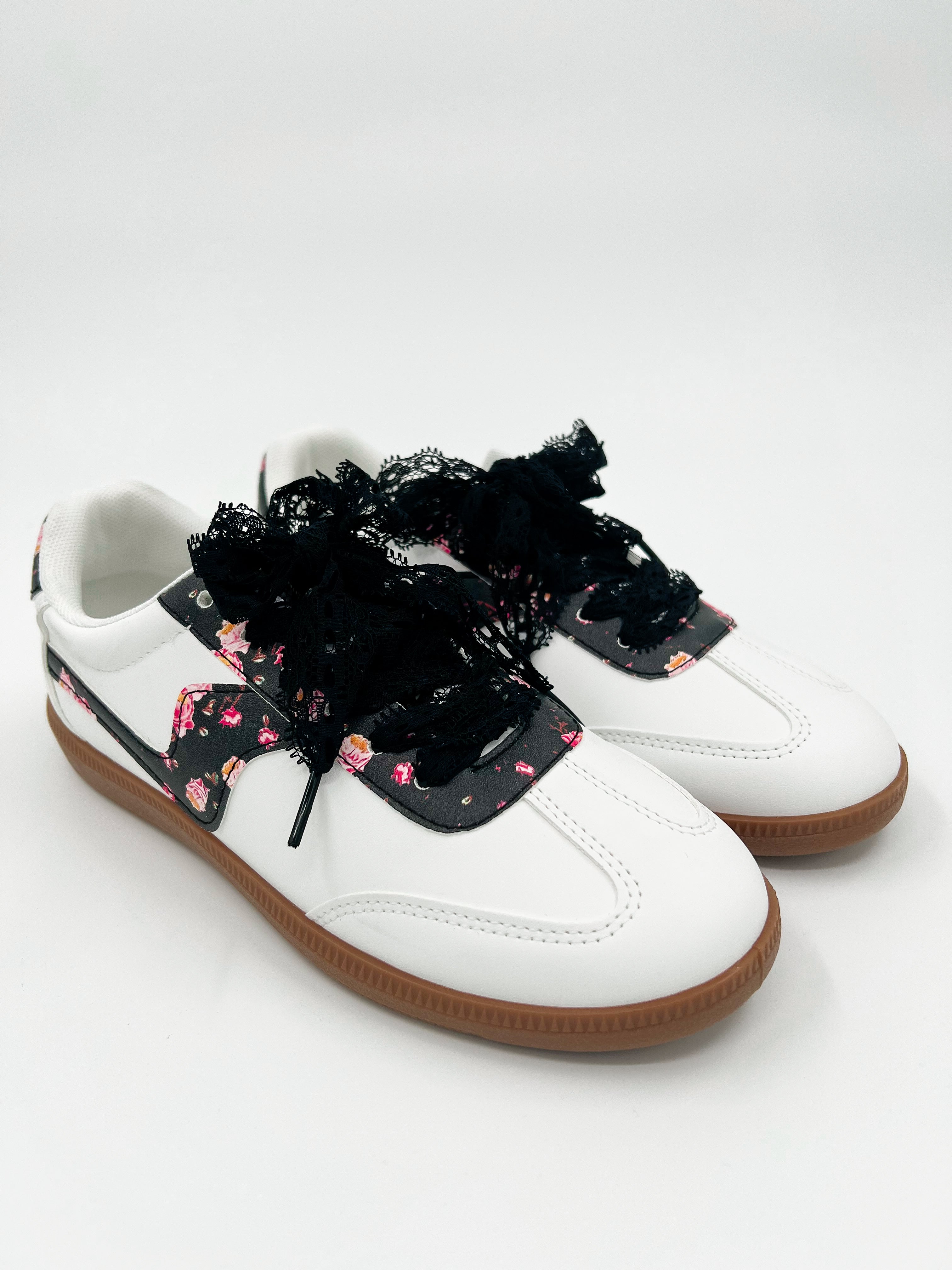 Step into style with our Garden Walks Faux Leather Sneakers! These playful kicks feature charming floral patterns and elegant lace details that elevate any casual outfit. Available in three gorgeous colors, why choose just one? Perfect for everyday adventures, these versatile sneakers combine comfort and whimsy for your daily garden strolls or city explorations.