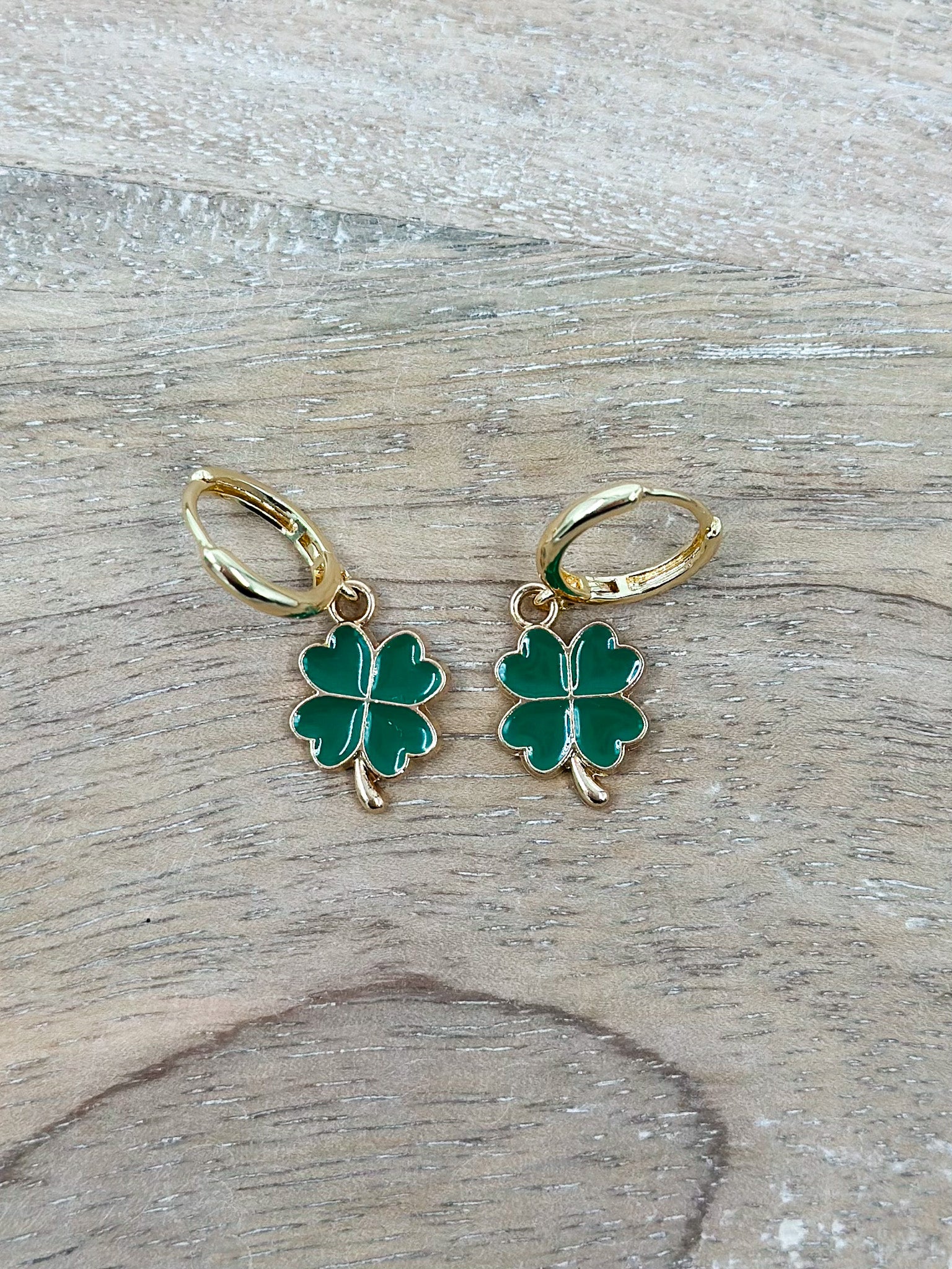 Celebrate the luck of the Irish with these charming shamrock drop earrings! Featuring delicate green shamrock charms that dangle from classic huggie hoops, they're the perfect festive accessory for St. Patrick's Day or year-round wear. The gold-tone finish adds a touch of elegance while the playful shamrock design brings instant holiday spirit to any outfit. Lightweight and comfortable for all-day wear, these lucky little earrings are sure to bring a smile and a sprinkle of good fortune wherever you go.