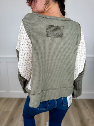POL Needed Style Cotton Blend Long Sleeve Green Avery Mae Top