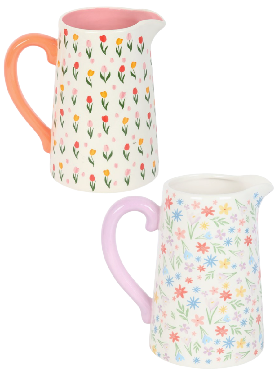 Add a touch of countryside chic with our Giving Hydrated Ceramic Pitcher. This charming flower jug doubles as a vase and decorative piece, making it perfect for Mother's Day, teacher gifts, and birthdays. Choose from seven delightful options, each featuring a captivating pattern and a curved handle!