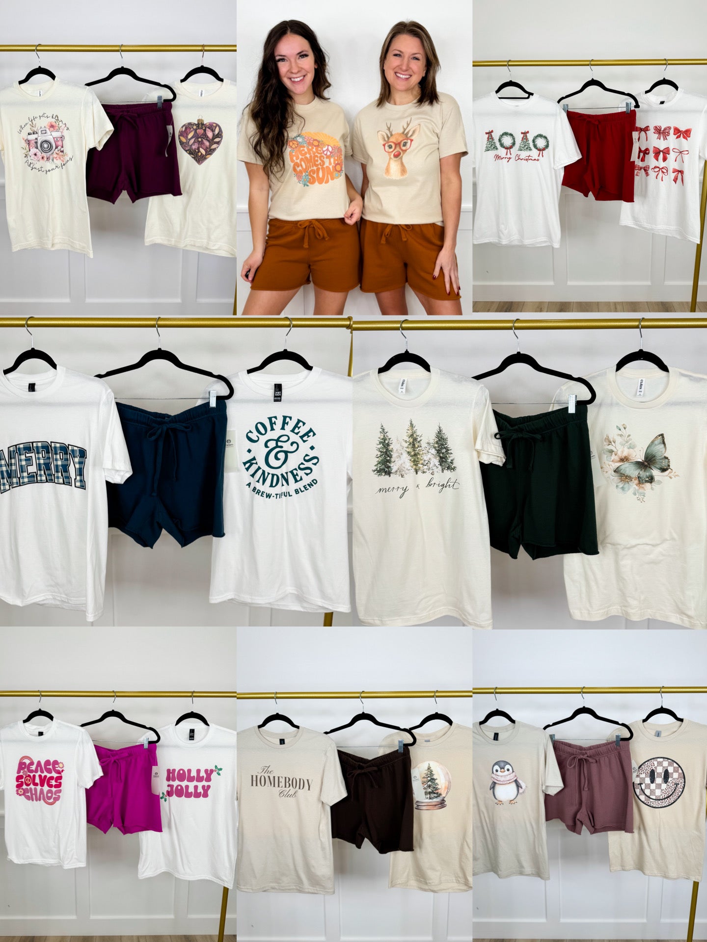 This versatile set gives you two graphic tee options for every shorts color—choose between festive Christmas designs or timeless everyday styles.