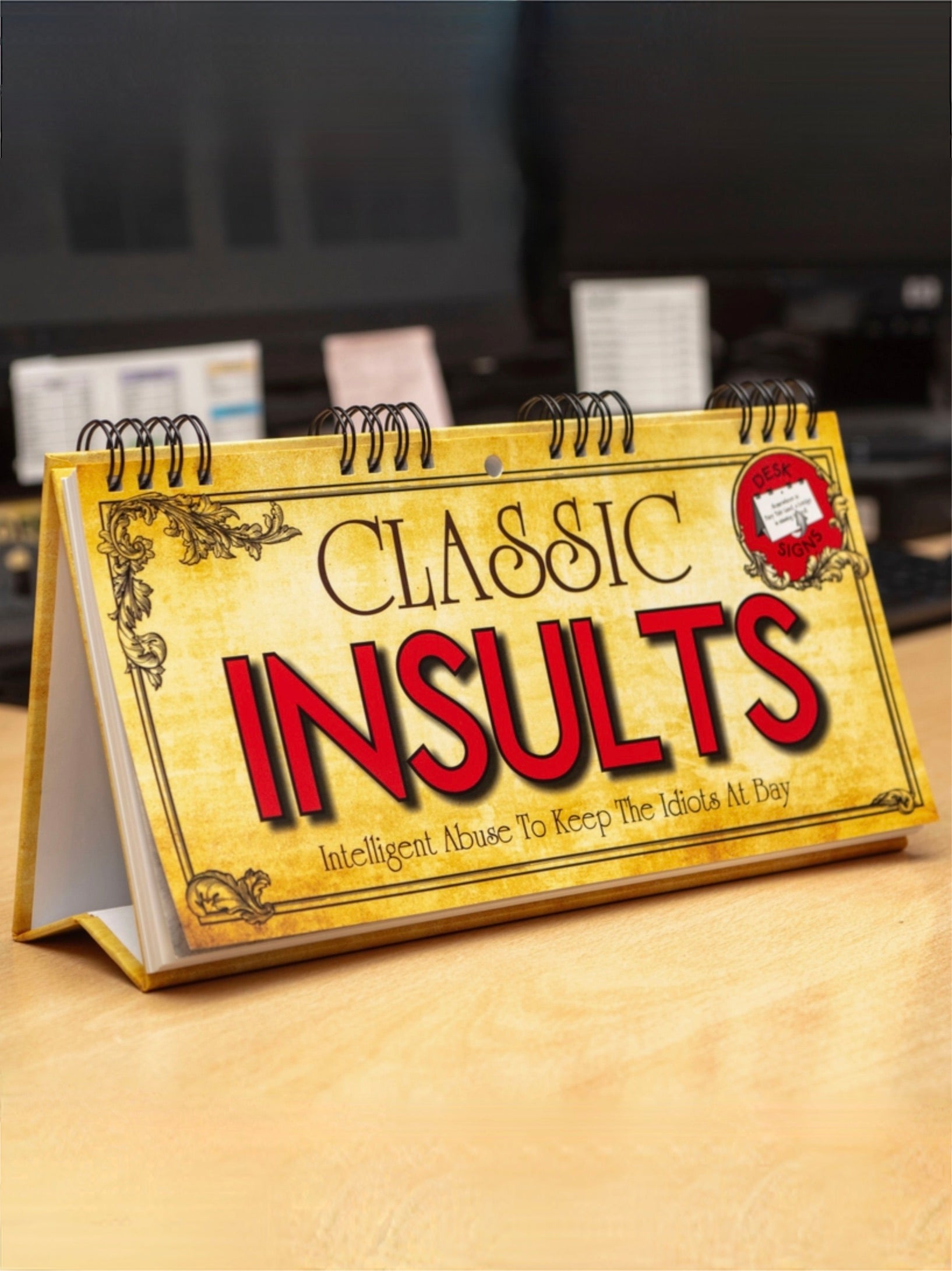 Get ready to laugh out loud with this hilarious desktop flip book sign! Pick between two comedy gold options: "Mood Swings" to hilariously track your daily temperament, or "Classic Insults" for some witty, tongue-in-cheek humor. Flip through the pages whenever you need a chuckle or want to give your coworkers a good-natured roast. This quirky desk accessory doubles as entertainment and a conversation starter that'll have everyone grinning. Perfect for anyone who appreciates clever humor and doesn't take themselves too seriously!