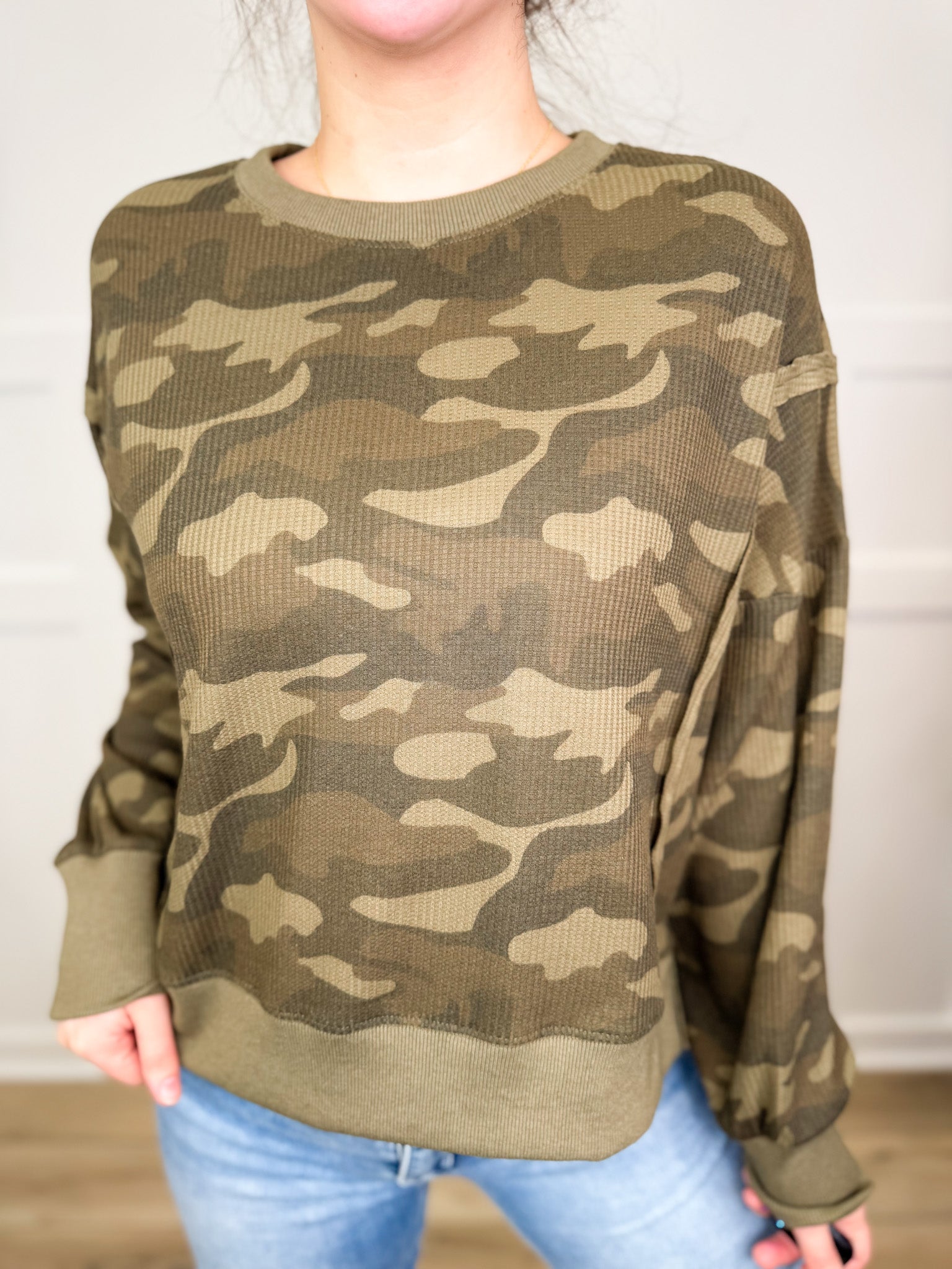 Meet your new favorite casual essential—a cozy cotton blend long sleeve top featuring a bold camo design. The relaxed fit keeps things comfortable while the timeless pattern works with practically any outfit. Perfect for those days when you want to look put-together without trying too hard.
