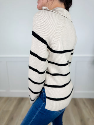 Lazy Days Knit Long Sleeve Oat Avery Mae Quarter Zip Sweater Top