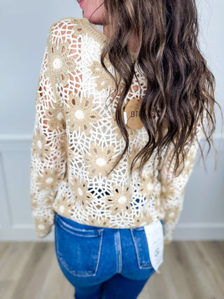 Whatever You Like Crochet Long Sleeve Tan Avery Mae Sweater Top