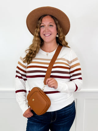 Ombre Horizon Knit Long Sleeve White Avery Mae Sweater Top - 2 colors!