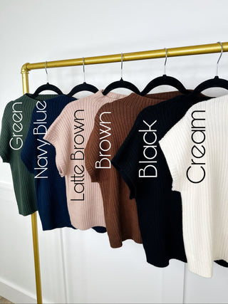 All the Needed Style Rayon Blend Short Sleeve Avery Mae Mom Cropped Sweater Top - 6 colors!