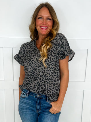 Safari Chic Ribbed Short Sleeve Leopard Avery Mae Top - 2 colors!