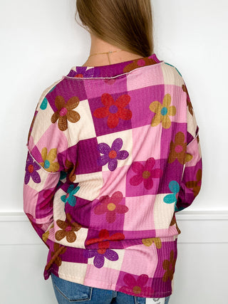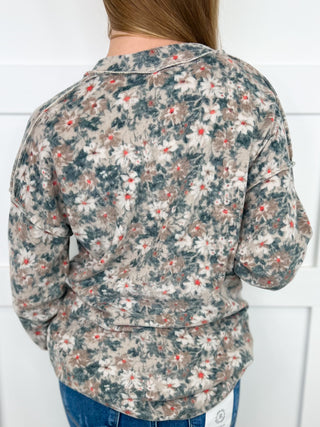 Moonlit Bloom Ribbed Long Sleeve Charcoal Avery Mae Tunic Top