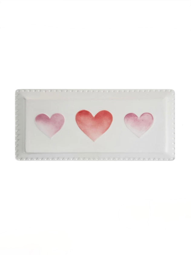 Serve up sweetness with this charming ceramic platter featuring delicate watercolor hearts in soft, romantic hues. The pristine white base provides the perfect canvas for these whimsical hand-painted designs, making it an instant conversation starter at any gathering. Whether you're displaying charcuterie, desserts, or appetizers, this versatile piece adds a touch of artistic flair to your table. Durable ceramic construction ensures it's built to last through countless celebrations and everyday moments alike.