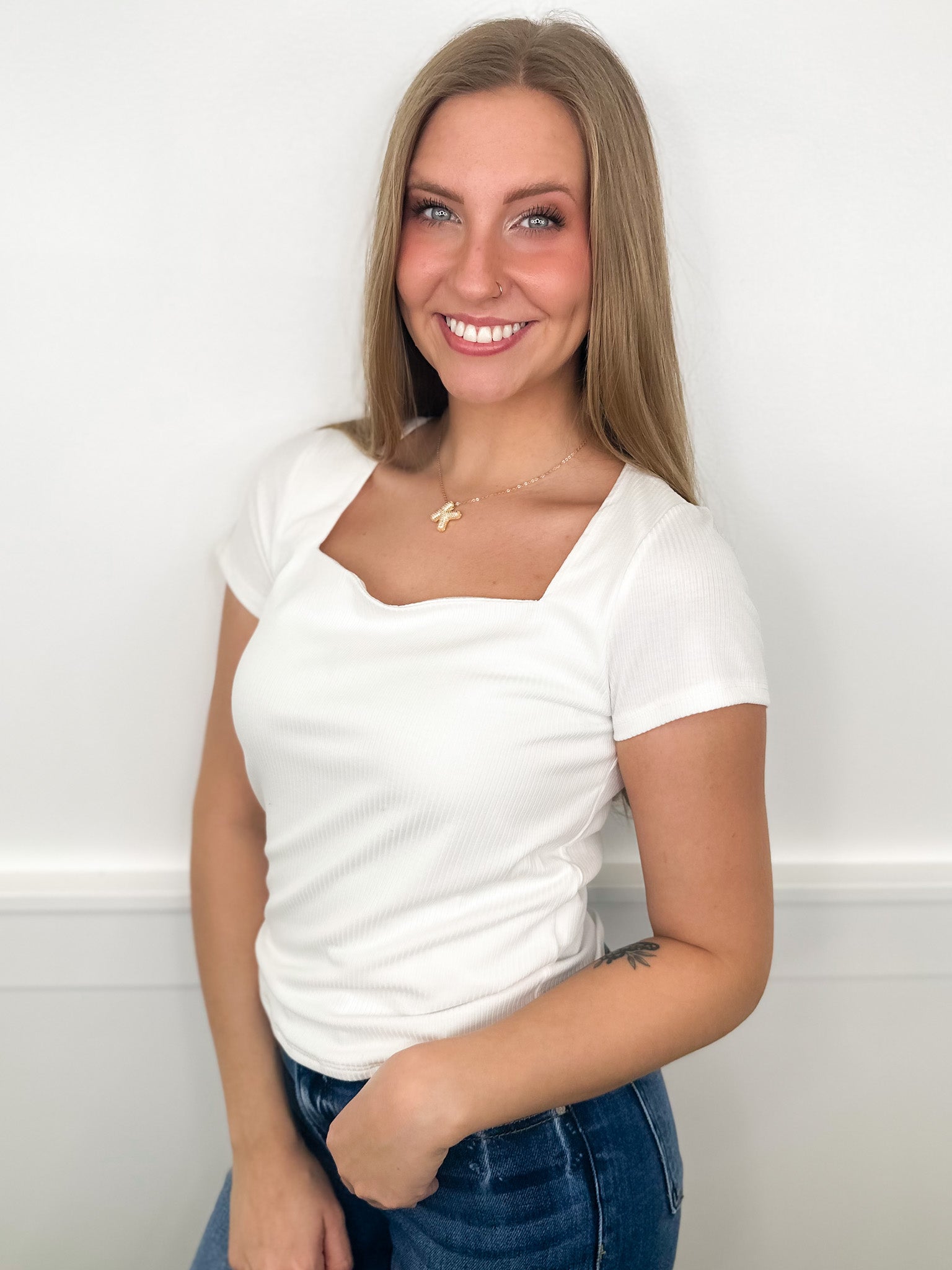 This playful ribbed top features a trendy square neckline and short sleeves, perfect for effortless style on any night out. Available in two versatile colors, it’s designed to keep you comfortable while turning heads wherever you go. Pair it with your favorite jeans or skirt for a fun, flirty look!