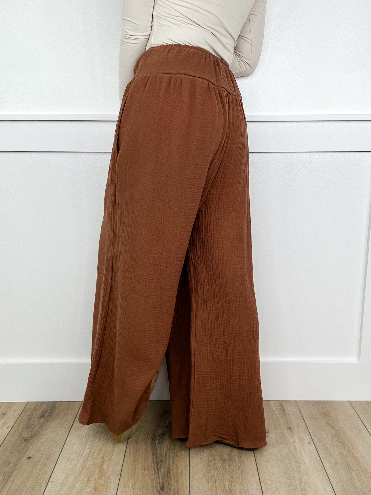 Slip into the Enjoy the Day High Rise Cotton Wide Leg Brown Avery Mae Bottoms for a breezy, carefree vibe. These lightweight bottoms feature a comfy drawstring waist, perfect for all-day adventures or lounging in style. Their high-rise fit adds a flattering touch while keeping things effortlessly cool and casual.