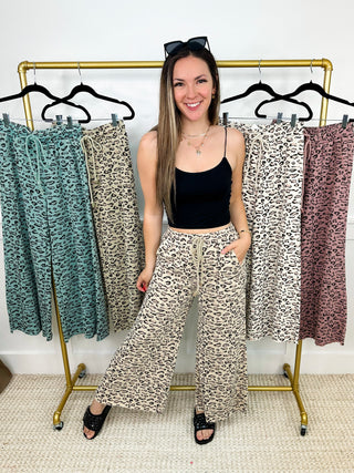 Running Wild High Rise Lightweight Wide Leg Leopard Avery Mae Bottoms