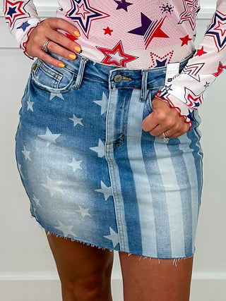 Judy Blue Maci Rigid Magic Distressed High Rise Medium Wash Skirt