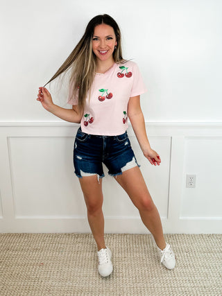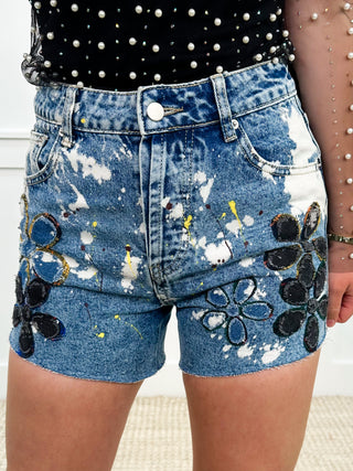 Risen Izzy Distressed High Rise Button Fly Dark Wash Bermuda Shorts