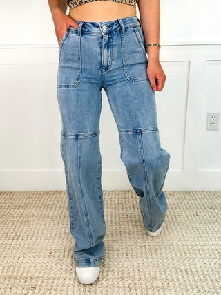 Judy Blue Kira High Rise Double Button Wide Leg Medium Wash Jeans