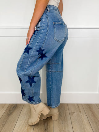 Krystal High Rise Cropped Barrel Leg Medium Wash Avery Mae Blue Jeans