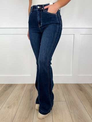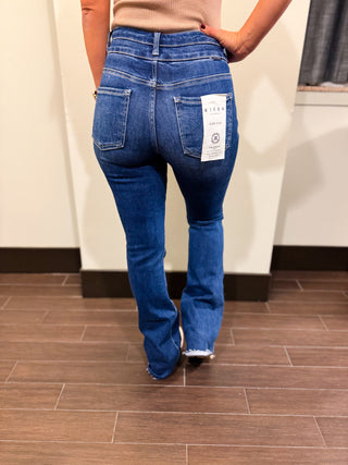 Risen Jada Tummy Control High Rise Flare Dark Wash Blue Jeans