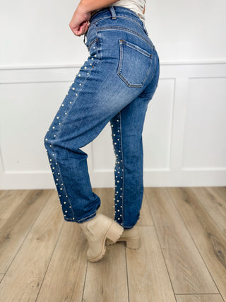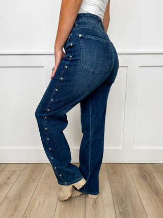 Judy Blue Sophia High Rise Embellished Straight Leg Dark Wash Jeans