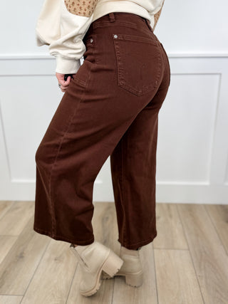 Judy Blue Andrea Mid Rise Wide Leg Cropped Brown Jeans