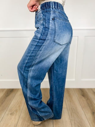 Risen Jolie Tummy Control High Rise Wide Leg Dark Wash Blue Jeans