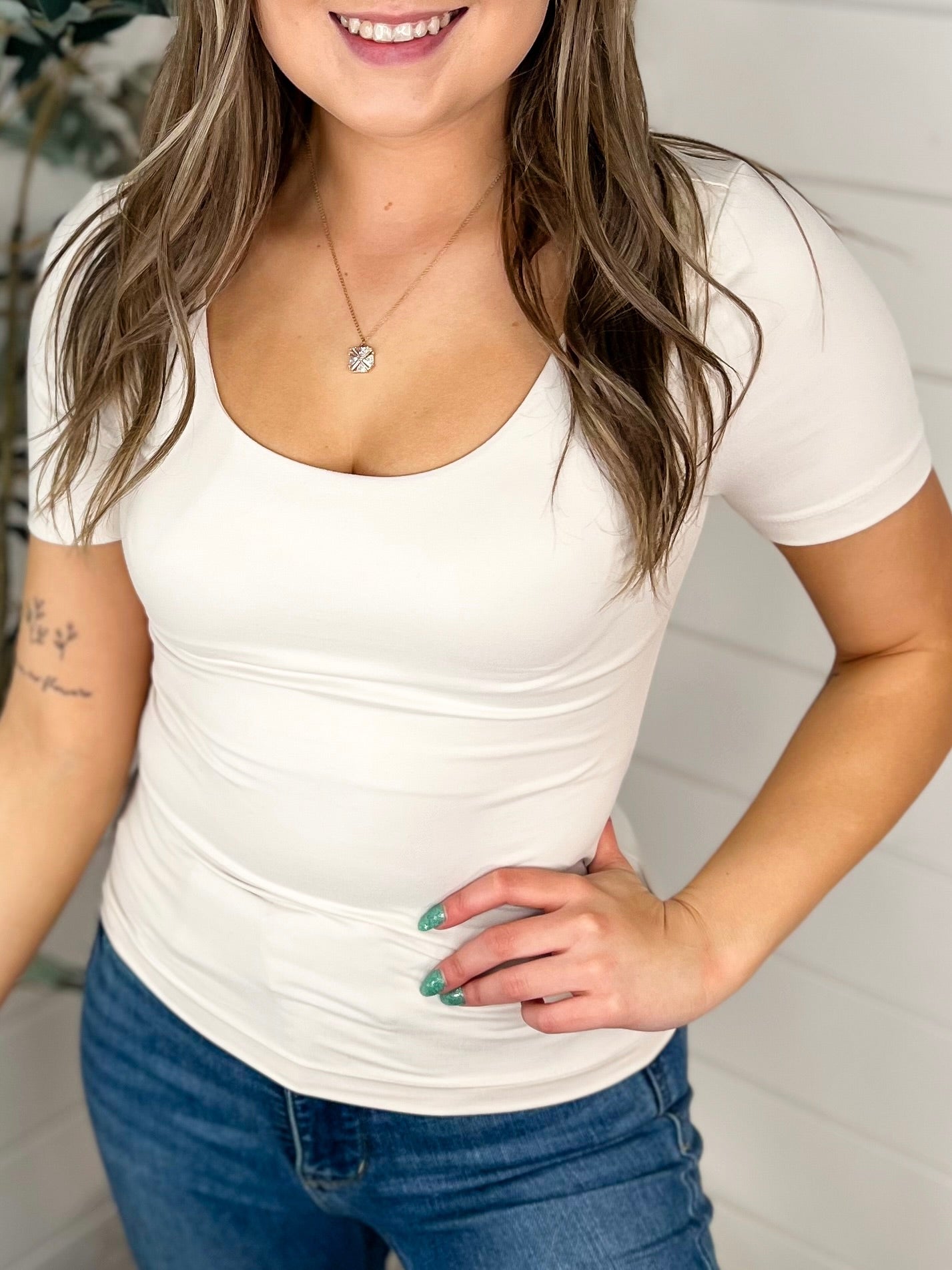 The Way You Move Top perfectly embodies effortless style with its fitted look, scoop neck, and super soft material. Available in 10 colors, this top will have you moving with confidence and ease.